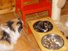 Wenn Demon etwas zu fressen sieht (das hier sind die Futternäpfe von Bonny und Clyde), dann stört ihn auch Jeannie nicht.